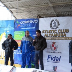 A fine gare, per le premiazioni, sono intervenuti alcuni consiglieri Fidal, sia a livello provinciale che regionale e anche il primo cittadino di Altamura, Mario Stacca che non ha voluto far mancare la sua presenza per testimoniare la vicinanza delle istituzioni in manifestazioni di questo genere. All'Atletic Club Altamura, quindi, è andata la Coppa quale campione della 1^ prova del campionato provinciale di cross ma anche i complimenti del pubblico presente per l'ottima organizzazione e per la riuscita dell'evento con la speranza che nel futuro ci sia la possibilità di organizzare più eventi di questo genere che ci riconciliano davvero, e scusate per la retorica, con lo sport. Grande la soddisfazione di Claudio Lorusso che si è impegnato in prima persona, coadiuvato dal presidente Franco Palasciano, per riportare nella nostra città una manifestazione che mancava ormai da parecchi anni, come grande la sua gioia per i risultati, alcuni oltre le aspettative, ottenuti dagli atleti da lui allenati e che gli anno regalato il successo in questa 1^ tappa del campionato provinciale di cross.