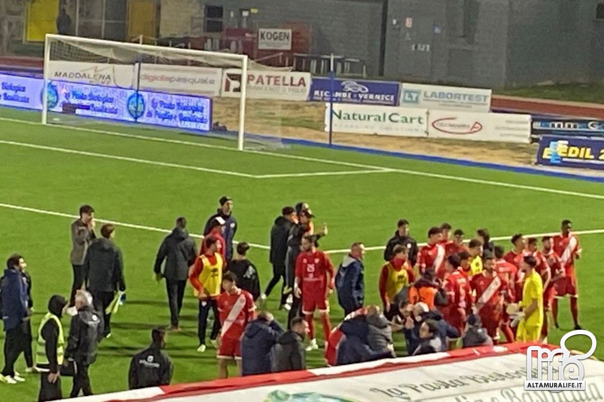 Pronti, via, si parte. Dopo 2 minuti, primo squillo di Lepore con un destro debole e facile per il portiere. Ma è al minuto 7, che Simone stappa subito il match portando in vantaggio il Team Altamura, approfittando dell'assist in rovesciata di Michele Grande. Sempre quest'ultimo, raddoppia lo score siglando il 2-0 biancorosso. Biancorossi sempre più in crescita e sempre più in partita calano il tris al minuto 36, su sviluppo di corner sigla il 3-0 capitan Silletti. 3 minuti dopo, sfiora il 4-0 e la doppietta personale Simone su cross di Curcio. Concesso 1 minuto di recupero ma Team Altamura irrefrenabile: occasione per Dipinto che dal limite dell'area piazza col destro ma scheggia la traversa. Sì va negli spogliatoi sul risultato di 3-0.